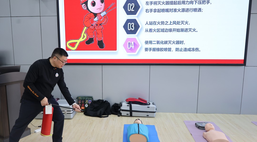 培训课程突出实用性和系统性。"消防应急基础"课程通过典型案例分析,深入讲解火灾预防与逃生要点;"红十字应急救护概论"传授现场评估与救援原则。在核心技能环节,重点培训了心肺复苏(CPR)和海姆立克急救法,详细演示AED使用流程及不同人群的气道异物梗阻解救方法,确保学员掌握关键救援技能。